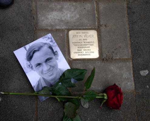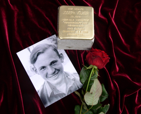 Den Bericht über den Lebens- und Verfolgungsweg von Joseph Völker finden Sie links unter dem rosa Button „Wir erinnern an Joseph Völker“.
