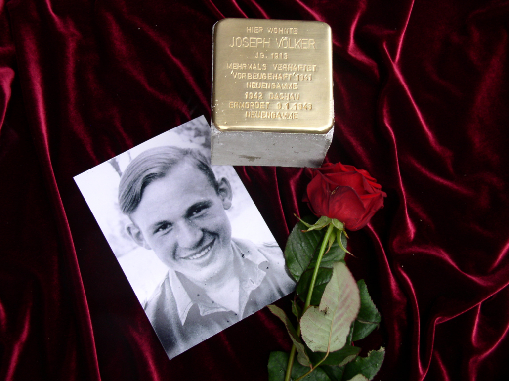 Joseph Völker wurde am 3. Juli 1913 in Bochum geboren. Er wurde am 9. Jan. 1943 im Konzentrationslager Neuengamme bei Hamburg ermordet. Er wurde nur 29 Jahre alt.