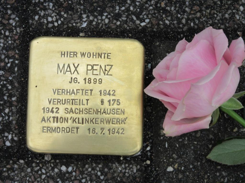 Der Arbeiter Max Penz wurde am 3. Juli 1899 in Remscheid geboren, wo er bis zur Deportation lebte. Er wurde am 16. Juli 1942 im Konzentrationslager Sachsenhausen bei Berlin ermordet. Im Sommer 1942 wurde im Klinkerwerk des KZ, einem der härtesten Arbeitskommandos, eine gezielte Mordaktion gegen Homosexuelle durch die SS durchgeführt. Auch Max Penz wurde Opfer dieser Mordaktion.